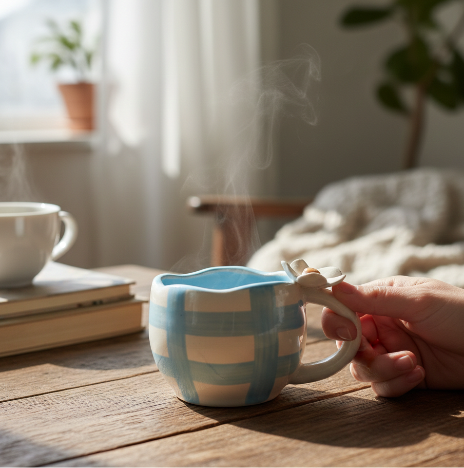 Daisy Flower on Handle Mug - Blue
